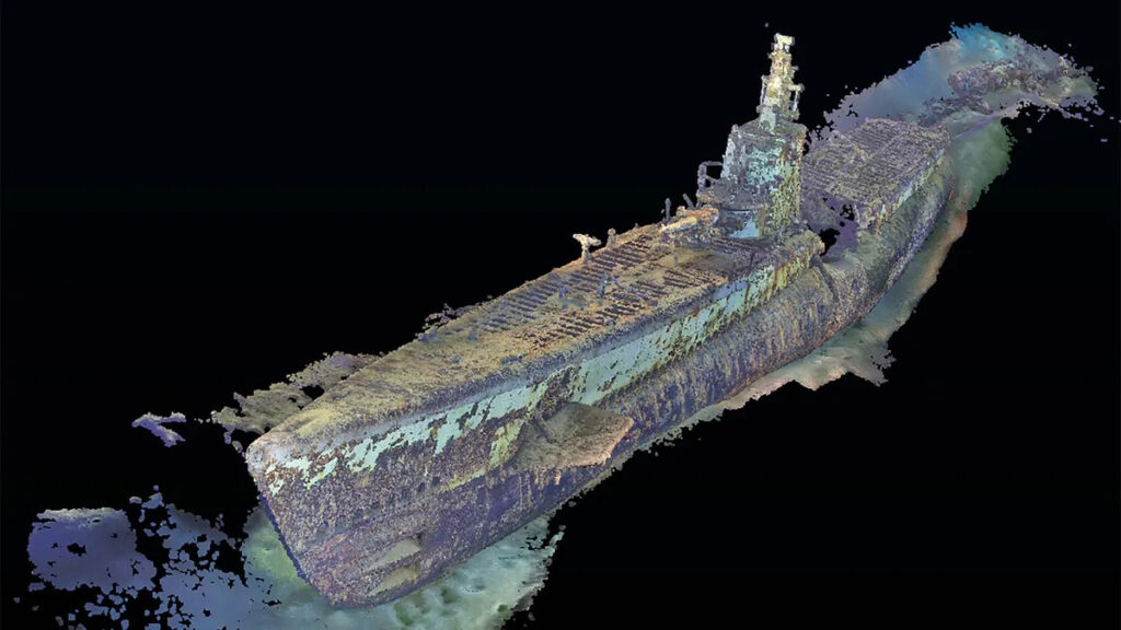 Taylor added that the AUV images show that the vessel appears to be in good condition. “The submarine is relatively intact, minus the damage done by the depth charges,” he said.